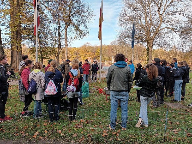 Über 80 fleißige, große und kleine Gartenbegeisterte waren gekommen, um unsere Inselgärtnerei zu einem noch schöneren Ort des Lernens zu gestalten. Es wurden sechs Bäume und 20 Beerensträucher gepflanzt. Alle Hecken wurden geschnitten und Gehölze gerodet, auch besonders stachlige. Wir haben Hochbeete ab- und aufgebaut, Kompostkisten konstruiert, umgegraben, viel Erde und Pferdemist verteilt, Wildkräuter entfernt, Laub gefegt und frisches Gemüse geerntet und natürlich auch gegessen, getrunken und geschwatzt. Herzlichen Dank für all die vielen Spenden: für Stifte, Schüsseln, Gläser, Ausstechformen, alte Handys, Tauschbücher, alte Druckerpatronen, für die vielen bunten Kuchen und Salate, die Bratwürste, die vielen Getränke und die guten Gespräche! Danke für alles und hoffentlich sehen wir uns in einem Jahr wieder im Garten, um das Gartenjahr dann auch wieder würdig zu beenden.
