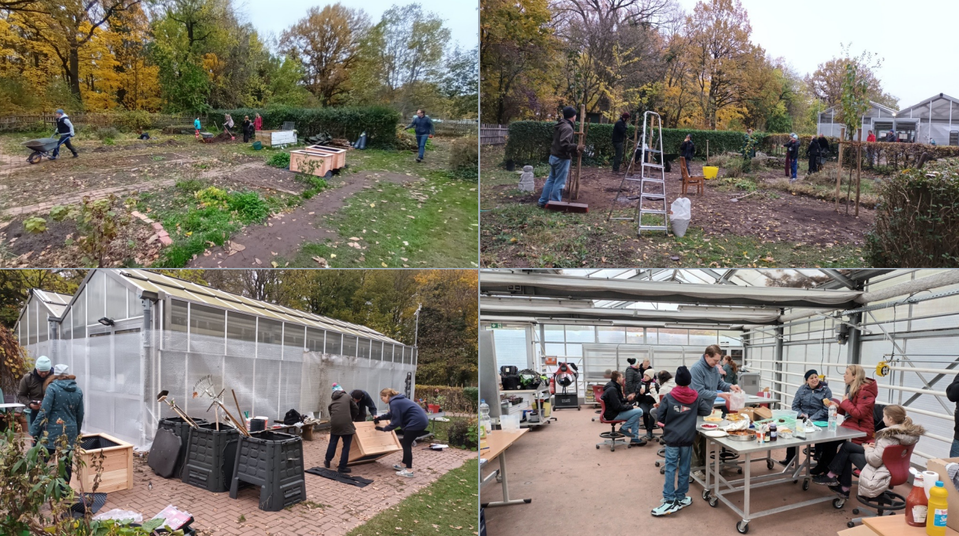 Über 80 fleißige, große und kleine Gartenbegeisterte waren gekommen, um unsere Inselgärtnerei zu einem noch schöneren Ort des Lernens zu gestalten. Es wurden sechs Bäume und 20 Beerensträucher gepflanzt. Alle Hecken wurden geschnitten und Gehölze gerodet, auch besonders stachlige. Wir haben Hochbeete ab- und aufgebaut, Kompostkisten konstruiert, umgegraben, viel Erde und Pferdemist verteilt, Wildkräuter entfernt, Laub gefegt und frisches Gemüse geerntet und natürlich auch gegessen, getrunken und geschwatzt.